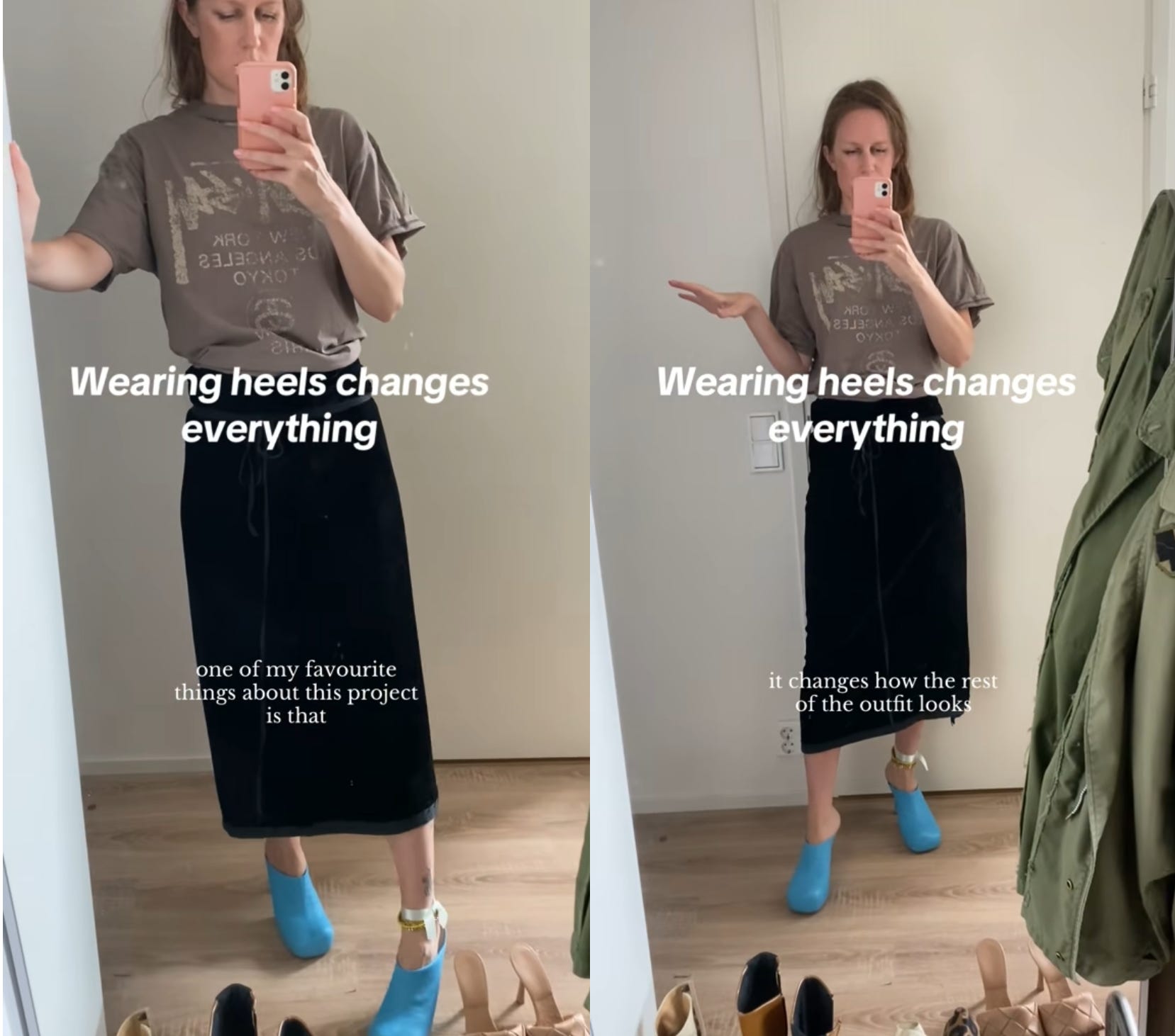 I’m glad I started this on the weekend when I was rested, so when I was tired, it wasn’t that shocking, that I needed to wear heels. That inevitably comes with the notion of looking put together and being perceived. You can’t hide in a hoodie when you have heels on. At least I at 178cm can’t. Although I guess the underlying point of this exercise is that wearing heels would turn into so effortless that I could hide in a hoodie in heels.